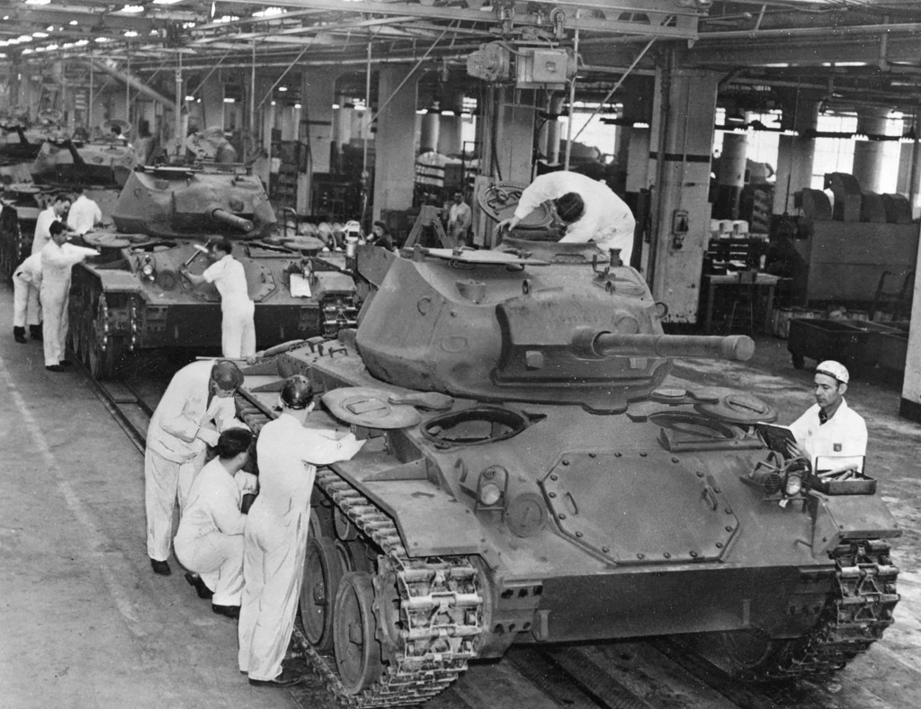 Producción del tanque ligero M24. Se dominó rápidamente, ya que compartía una serie de componentes con el Light Tank M5A1.