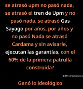 Aclaraciones: 1) La demora y las idas y venidas para adquirir las embarcaciones es cierta pero la voluntad de cometer los delitos que fueron denunciados es otra historia y no creo que prospere. 2) Lamentablemente para el P. Nacional, como depende de una sola persona, carece de la posibilidad de contrarrestar todo este circo.